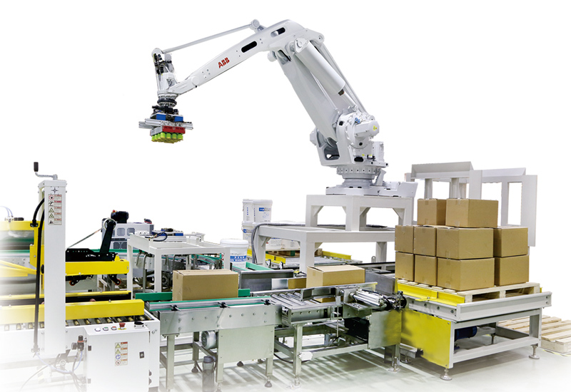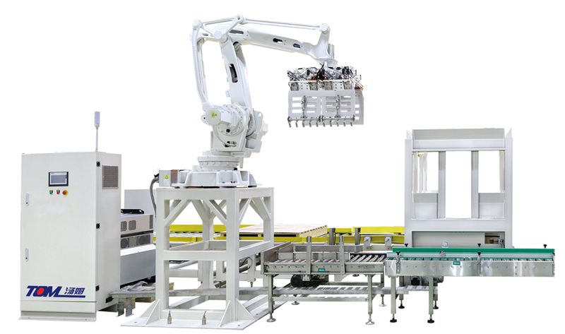 3、同臺機器人碼2條生產線.減少了后道包裝的勞動強度和用工,節省生產成本。